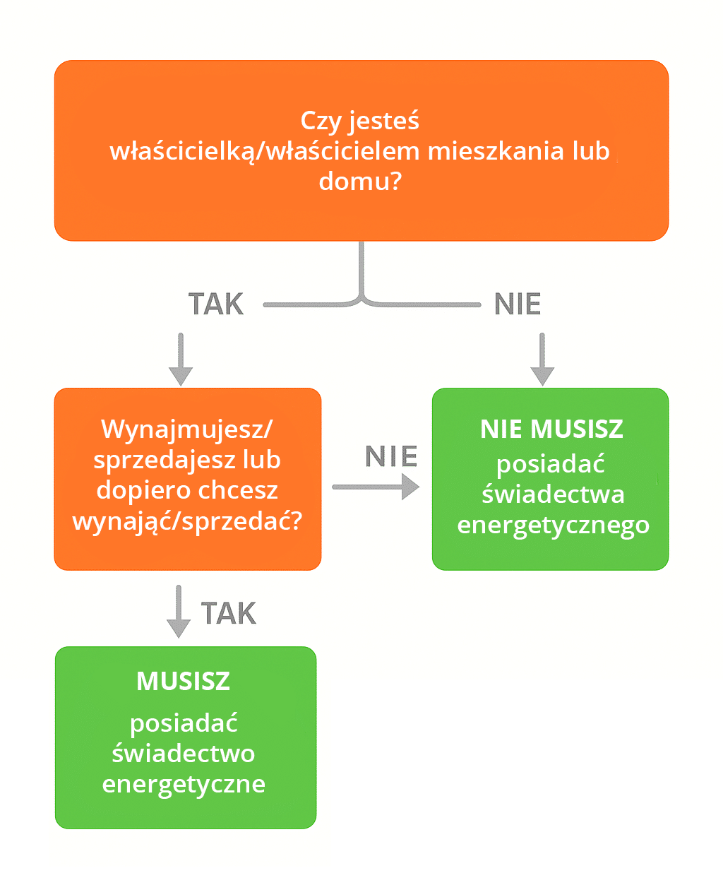 Świadectwa energetycznego nie trzeba sporządzać dla istniejącego budynku lub lokalu, dopóki nie jest sprzedawany ani wynajmowany. Wyjątki obejmują m.in. budynki zabytkowe, miejsca kultu, obiekty przemysłowe bez instalacji zużywających energię (poza oświetleniem), domy użytkowane maks. 4 miesiące w roku, budynki do 50 m² oraz gospodarstwa rolne o EP ≤ 50 kWh/(m²·rok).